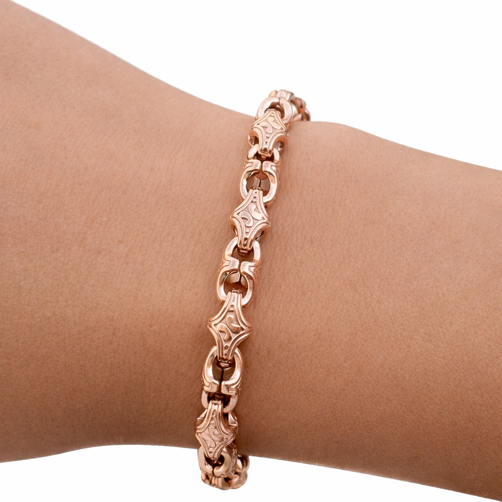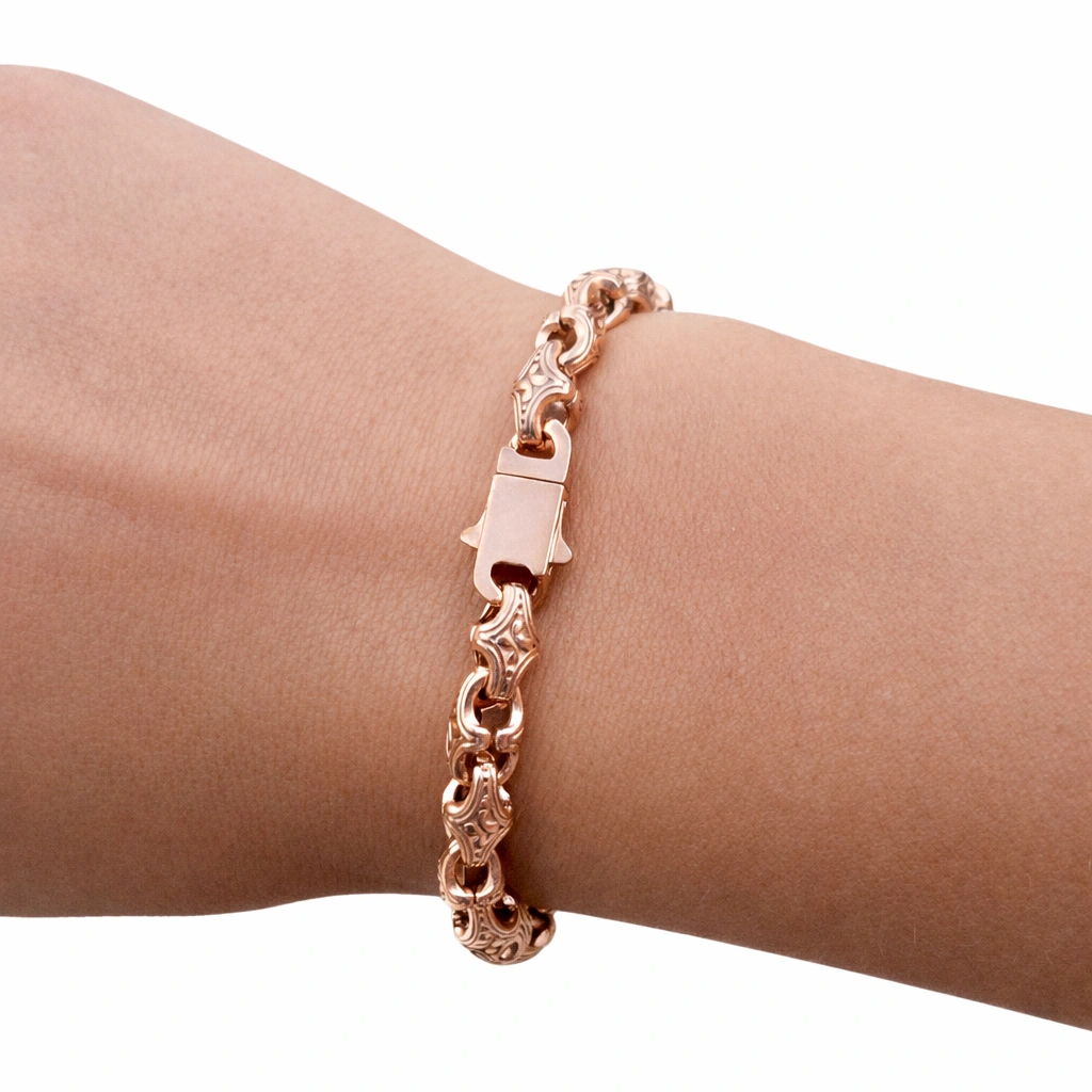 Apyrankė pagaminta iš aukštos kokybės titano, o jos išorė auksuota galvanikos būdu. Spalva vizualiai atitinka raudoną auksą, išlaikant šiltą, sodrų atspalvį ir prabangos pojūtį.