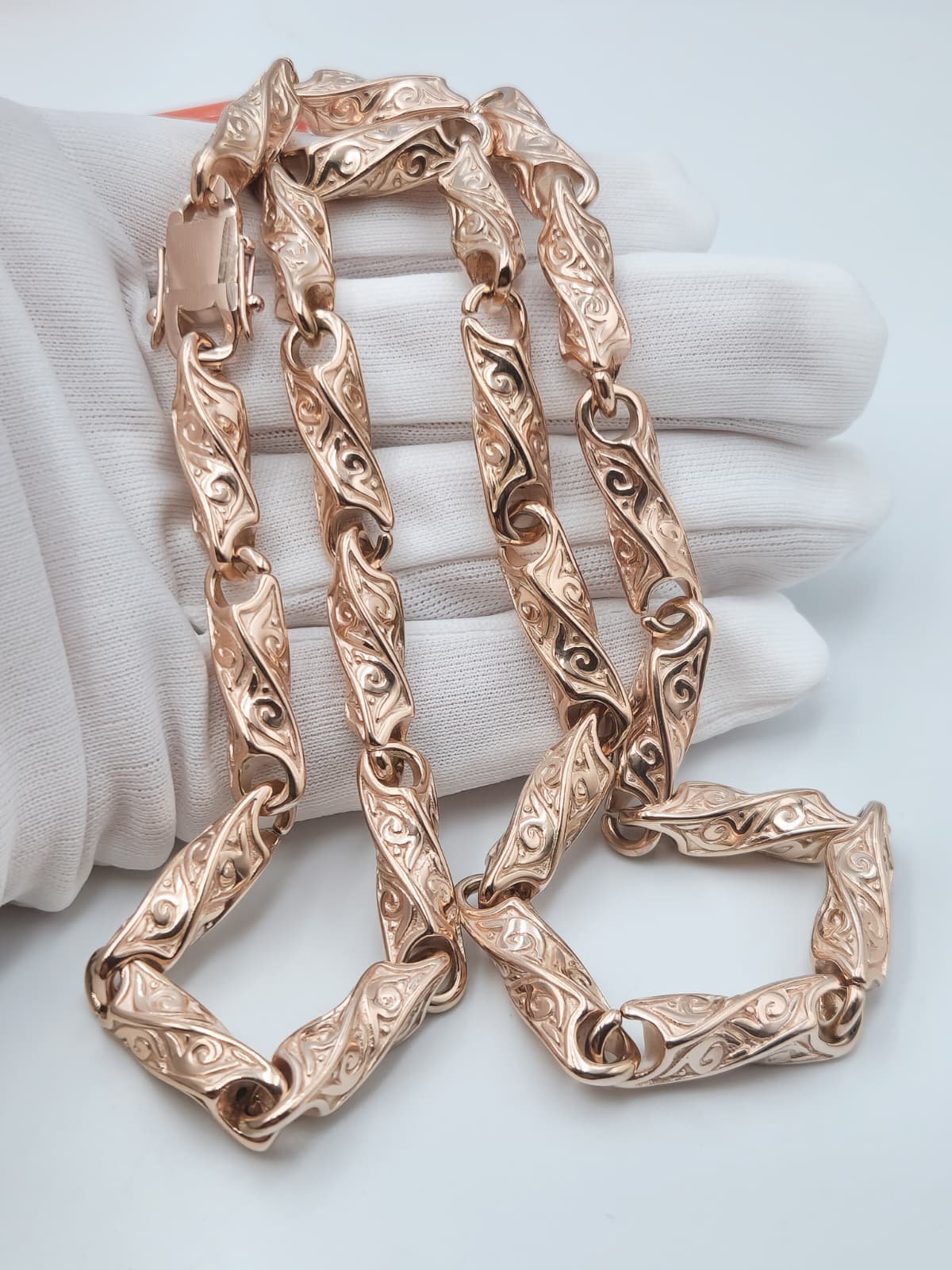 Jeigu ši grandinėlė būtų gaminama pilnai iš 585 aukso, dirbinio vertė siektų apie 15 600 €.