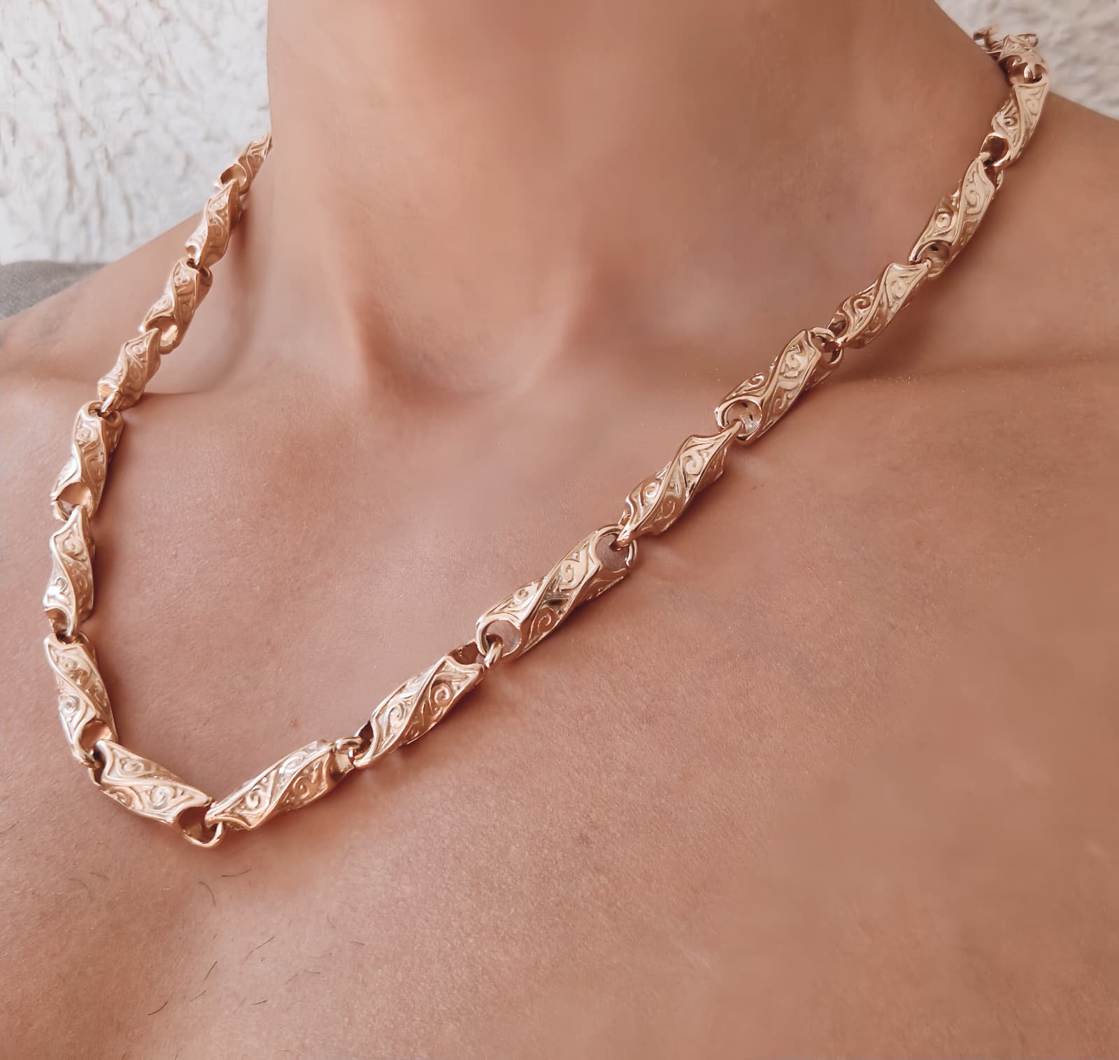 Masyvi, solidi ir charakterį pabrėžianti rankų darbo Georg pynimo grandinėlė, skirta vyrams, vertinantiems stiprų vizualinį efektą ir išskirtinumą. Tai ne subtilus akcentas – tai aiškus stiliaus pareiškimas.