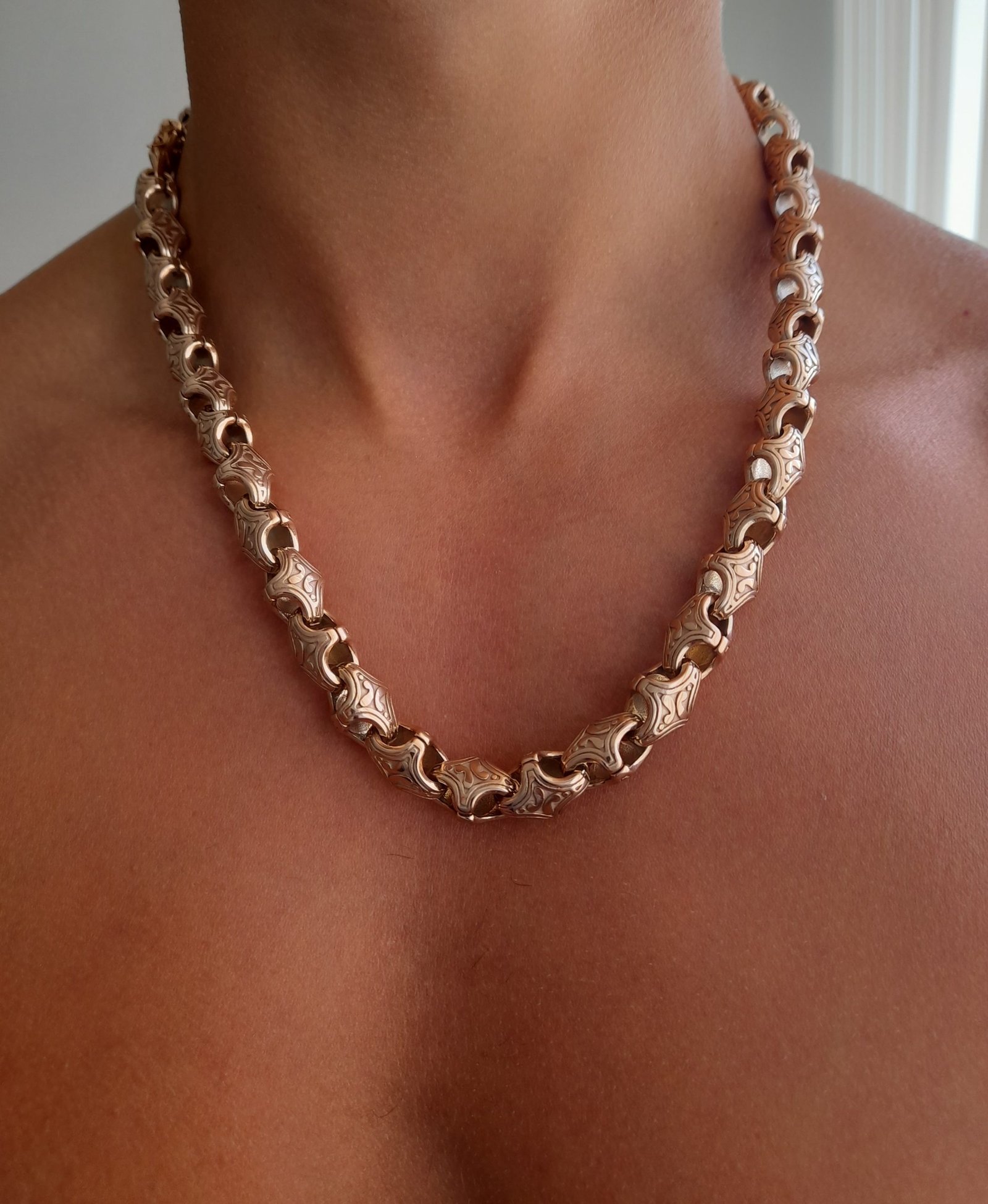Tai itin masyvi, rankų darbo „Kortos“ pynimo grandinėlė, sukurta vyrams, kurie renkasi maksimalų svorį, tvirtumą ir aiškų prabangos pareiškimą. 12 mm plotis – tai jau ne detalė, o pagrindinis įvaizdžio akcentas.