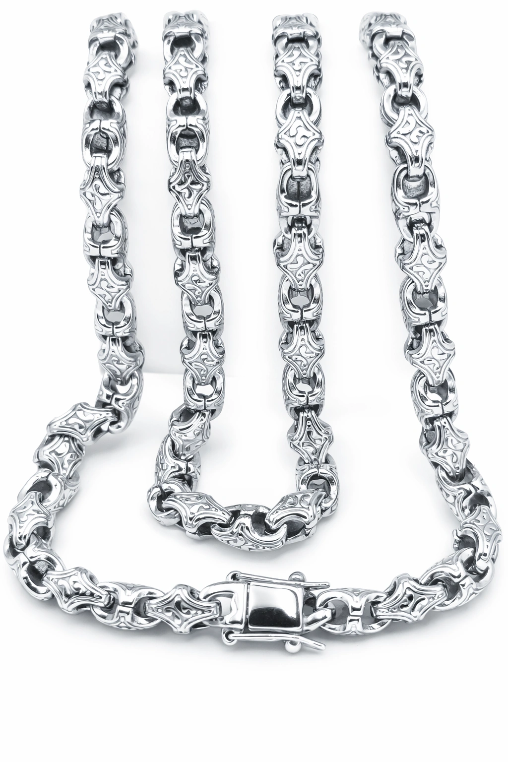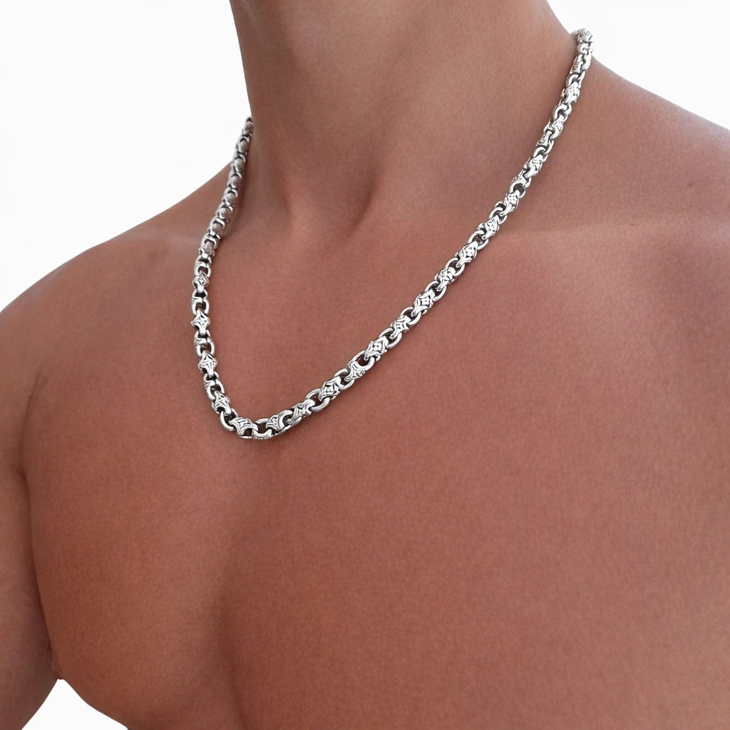 Klasikinio „Kortų“ pynimo grandinėlė – subalansuota, tvarkinga ir universali. 6 mm plotis suteikia solidumo, bet išlieka patogus kasdieniam dėvėjimui. Tai modelis, kuris tinka tiek vienas, tiek su pakabuku.