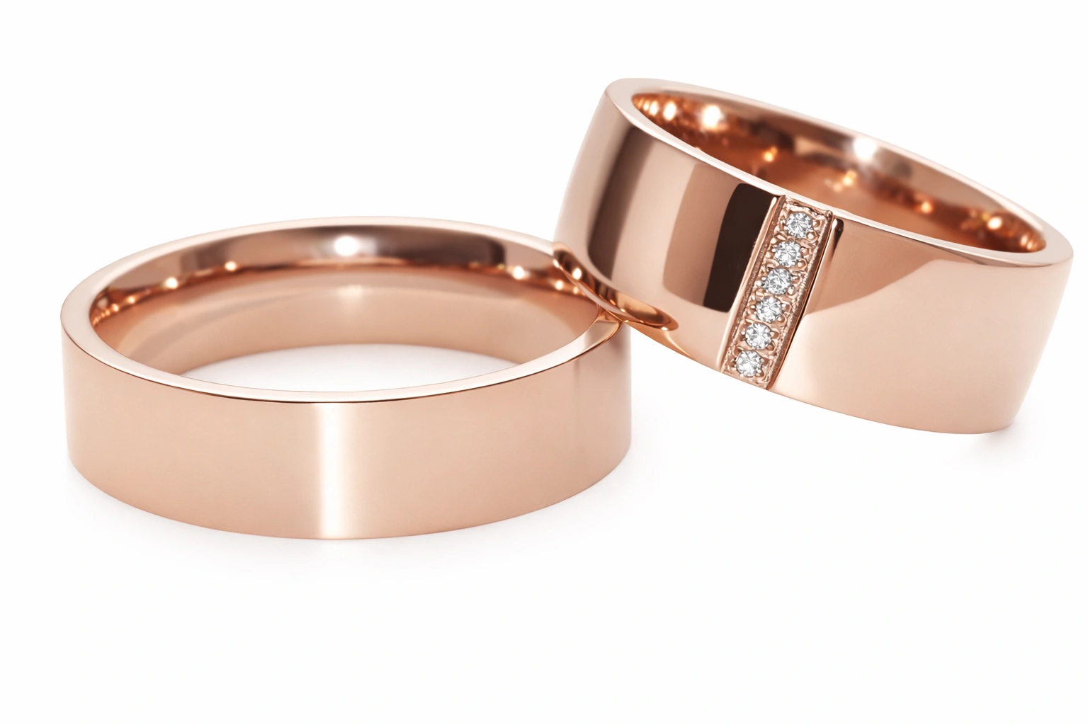 Mūsų titano žiedai dengti 585 prabos raudonu auksu, leidžia reikšmingai sutaupyti ir yra šiuolaikiška alternatyva auksui.