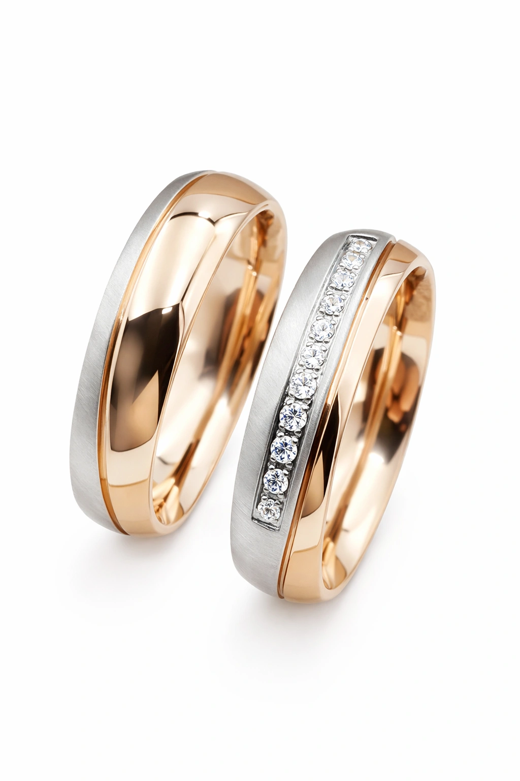 Mūsų titano žiedai dengti 585 prabos rausvu auksu leidžia reikšmingai sutaupyti ir yra šiuolaikiška, patikima alternatyva tradiciniam auksui.